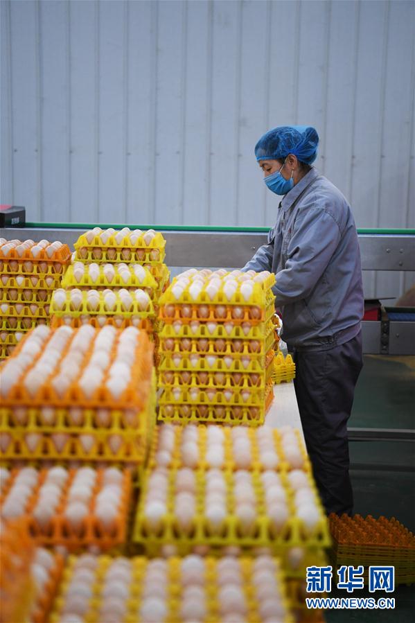 近年来,山西省运城市稷山县依托传统蛋鸡养殖优势,在当地龙头企业的带动下,着力发展蛋鸡规模化养殖。截至目前,稷山县蛋鸡存栏量达到1350万只,年产鸡蛋11.96万吨,有效带动养殖户增收致富。(新华社记者 杨晨光 摄)