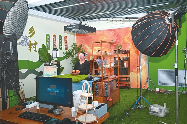 10月27日,五台县台城镇发挥党员大学生当村干部的优势,在走马岭村建起电商中心,通过平台运营、直播带货等方式,将当地的蜂蜜、花椒、文创等12种产品销往全国各地,单日成交额最高达3万元。(金俊贤摄)