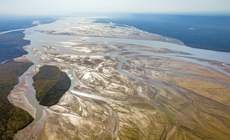 11月11日,黄河万荣段水位出现季节性回落。滩涂之上,水流冲刷出交错纵横的河汊,宛如枝干舒展、脉络清晰的“沙画森林”,蔚为壮观。(杨建峰摄)