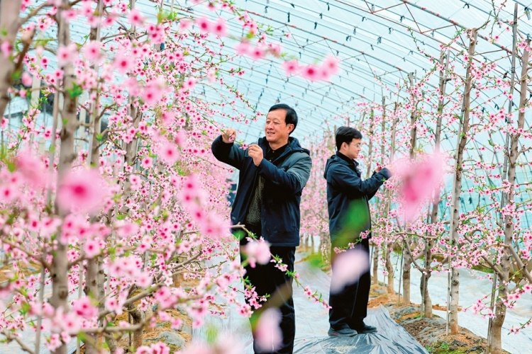 立春时节,万荣县通化镇西孝原村大棚里桃花盛开,果农抢抓农时开展桃树管护,确保增产丰收。近年来,当地将种植采摘与观光休闲相结合,按照规模化、标准化、产业化经营,推动农旅融合、促进农民增收。闫鑫摄
